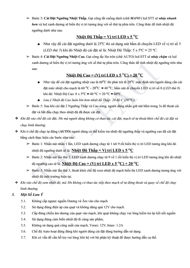Khi lớn hơn ngưỡng 45oC quạt sẽ chạy max tốc độ.
