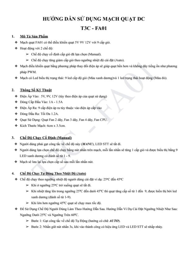 Mạch quạt FA01 có thể điều khiển quạt 5V 9V 12V với 9 cấp gió.